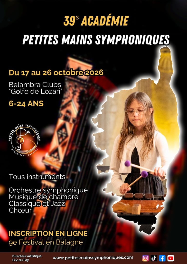 A l’occasion de leur 39e Académie Nationale, les Petites Mains Symphoniques participeront à la 9e édition du Festival "Petites Mains Symphoniques en Balagne". Les musiciens donneront une quinzaine de concerts dans des lieux magnifiques en Balagne.